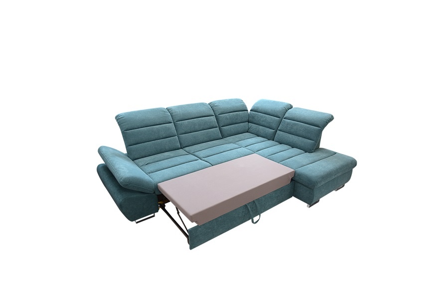 Navyše sedacia súprava je vybavená úložným priestorom a rozkladom na spanie. Poťahovú látku si môžete zvoliť podľa vzorkovníka látok. Nohy je možné objednať strieborné aj čierne. Sedacia súprava má v sebe integrované praktické vymoženosti, alebo aj prvky, ktoré zvyšujú pohodlie. Sedačku si určite obľúbi celá rodina. Možnosť prikúpiť topper na každodenné spanie.