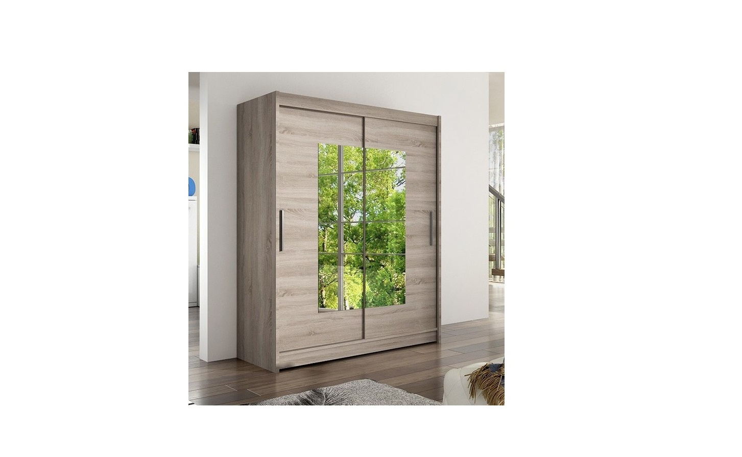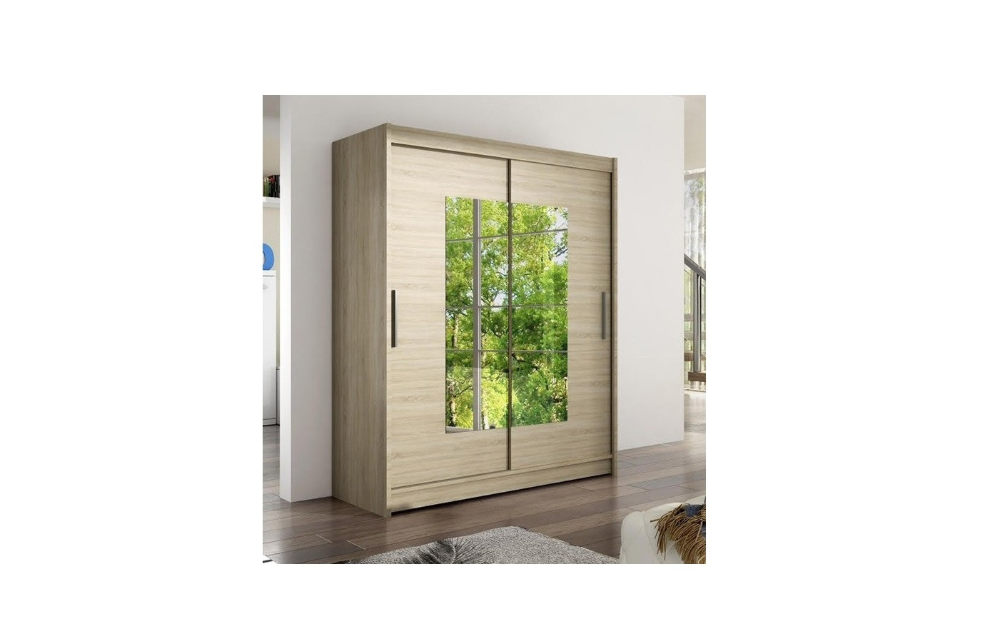 Šatníková skriňa Westa III s posuvnými dverami a zrkadlom v modernom prevedení.